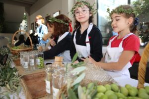 zeytinli ekmek yapımı, zeytinyağlı sabun ve yemek atölyeleri ile sanat atölyeleri gibi